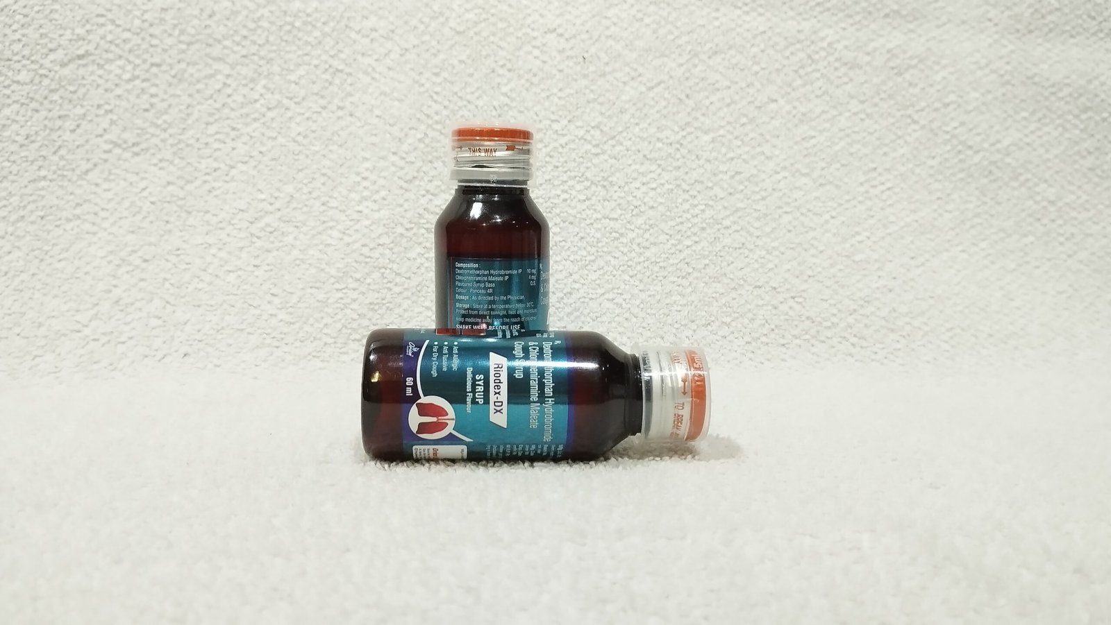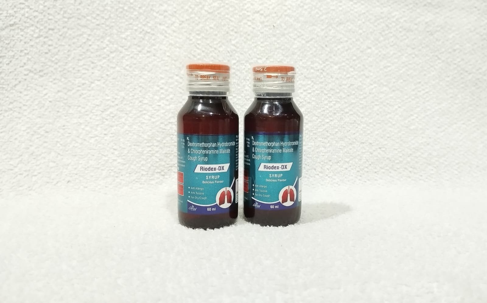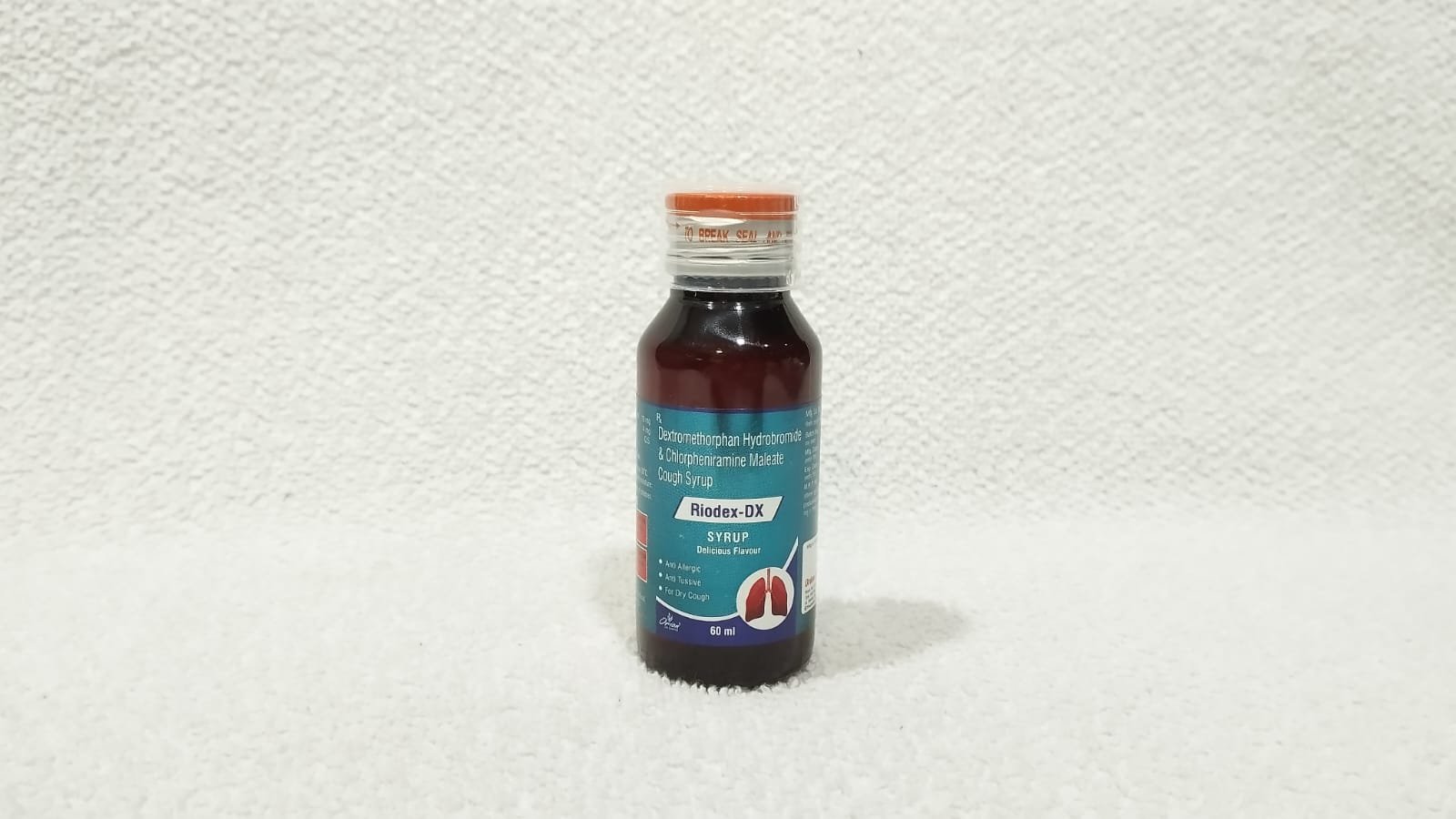 BRAND NAME : RIODEX-DT SYRUP MRP : 49.75 COMPOSITION : DEXTROMETHORPHAN HYDROBROMIDE 10MG, CHLORPHENIRAMINE MALEATE 4MG
