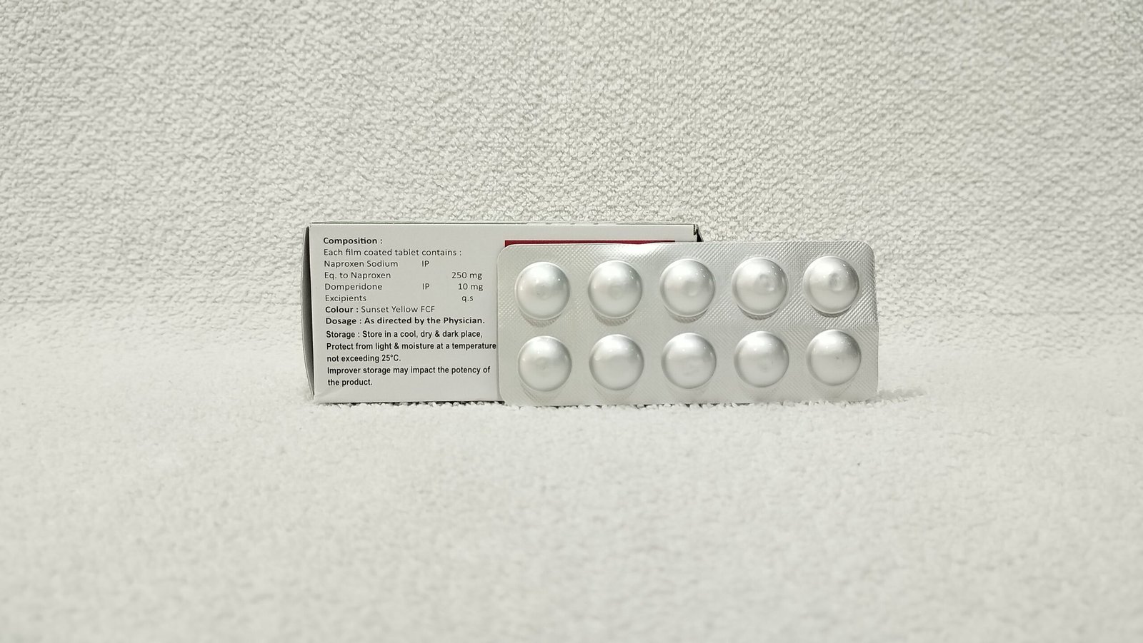 Composition:-Naproxen 250mg & Domperidone 10mg tab