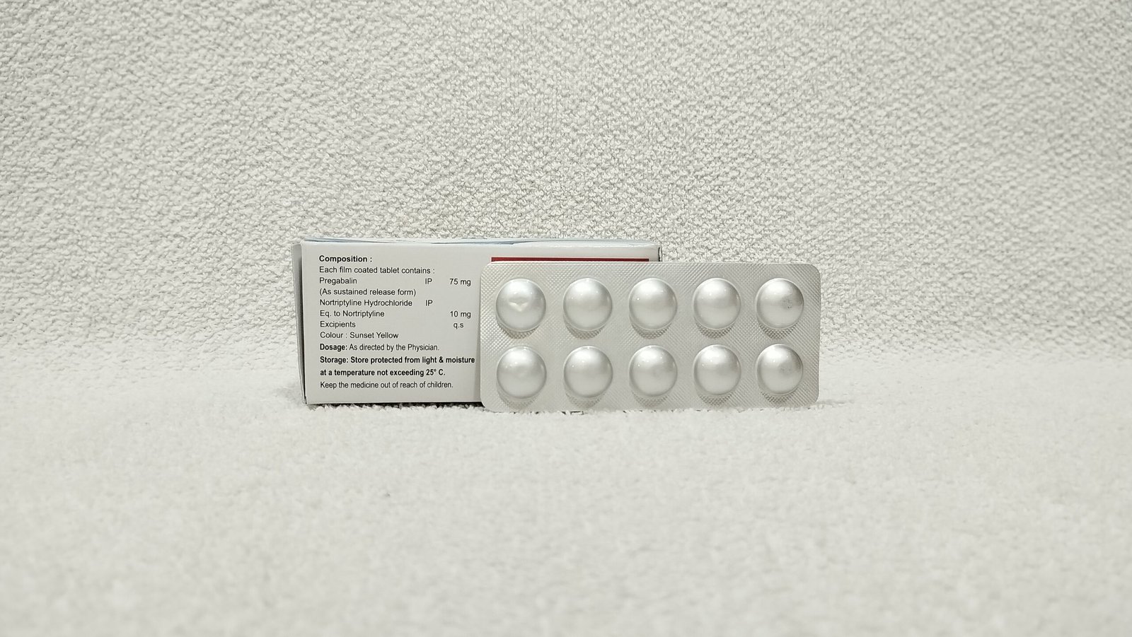 COMPOSITION: PREGABALIN 75MG, NORTRIPTYLINE HYDROCHLORIDE 10MG